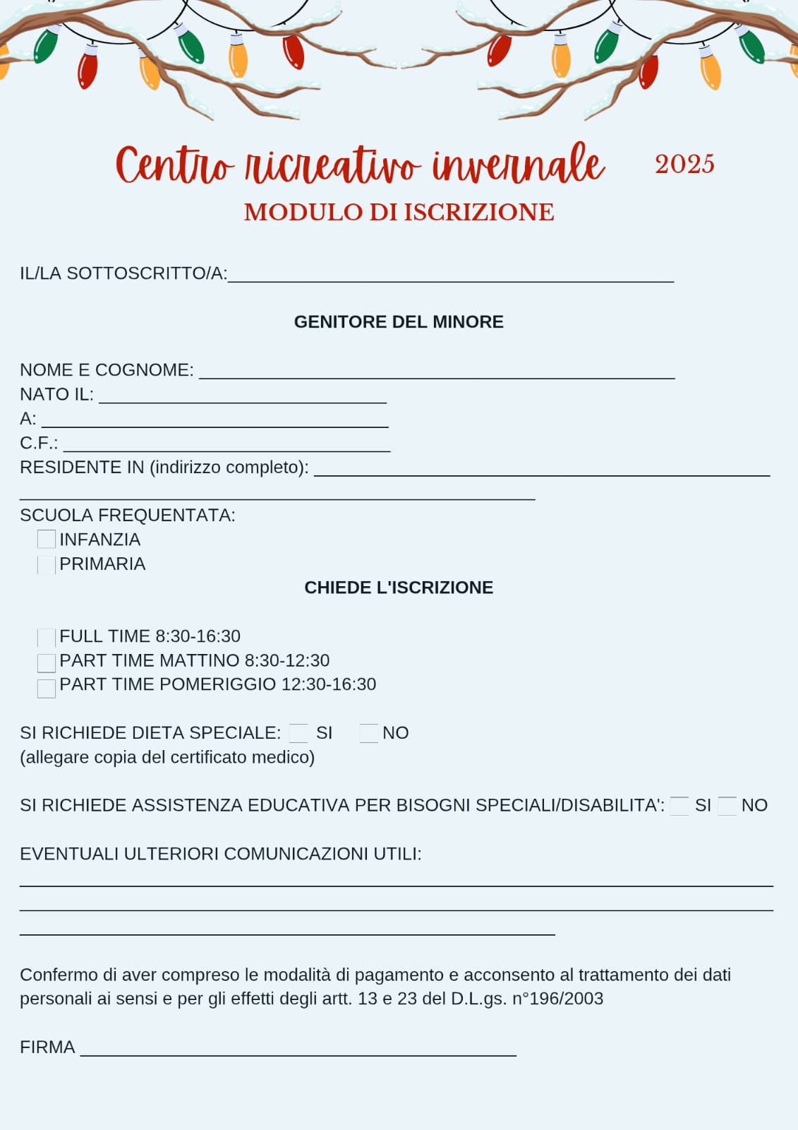organizza il Centro ricreativo invernale 2025 per gli alunni frequentanti la Scuola dell’Infanzia e la Scuola Primaria del plesso di Ozzero. Il Centro si svolgerà nei seguenti giorni ed orari: