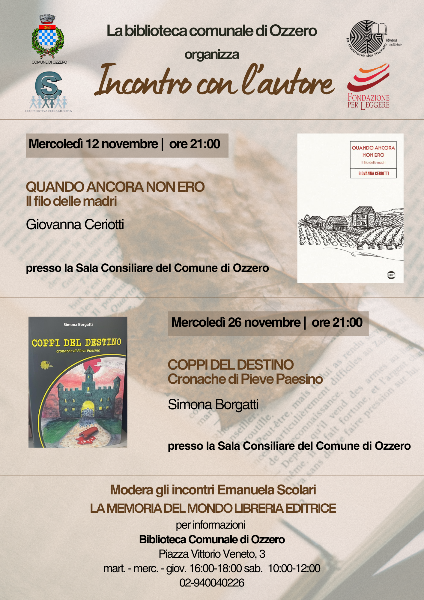 la Biblioteca Comunale di Ozzero organizza "INCONTRO CON L'AUTORE"