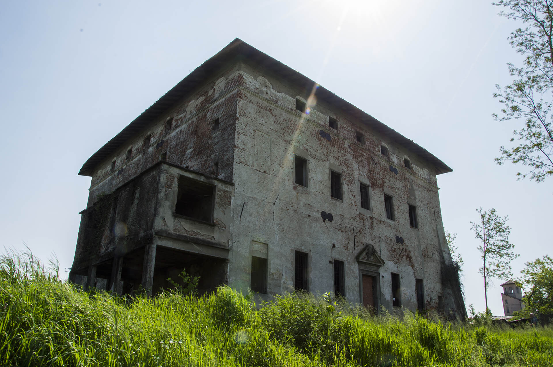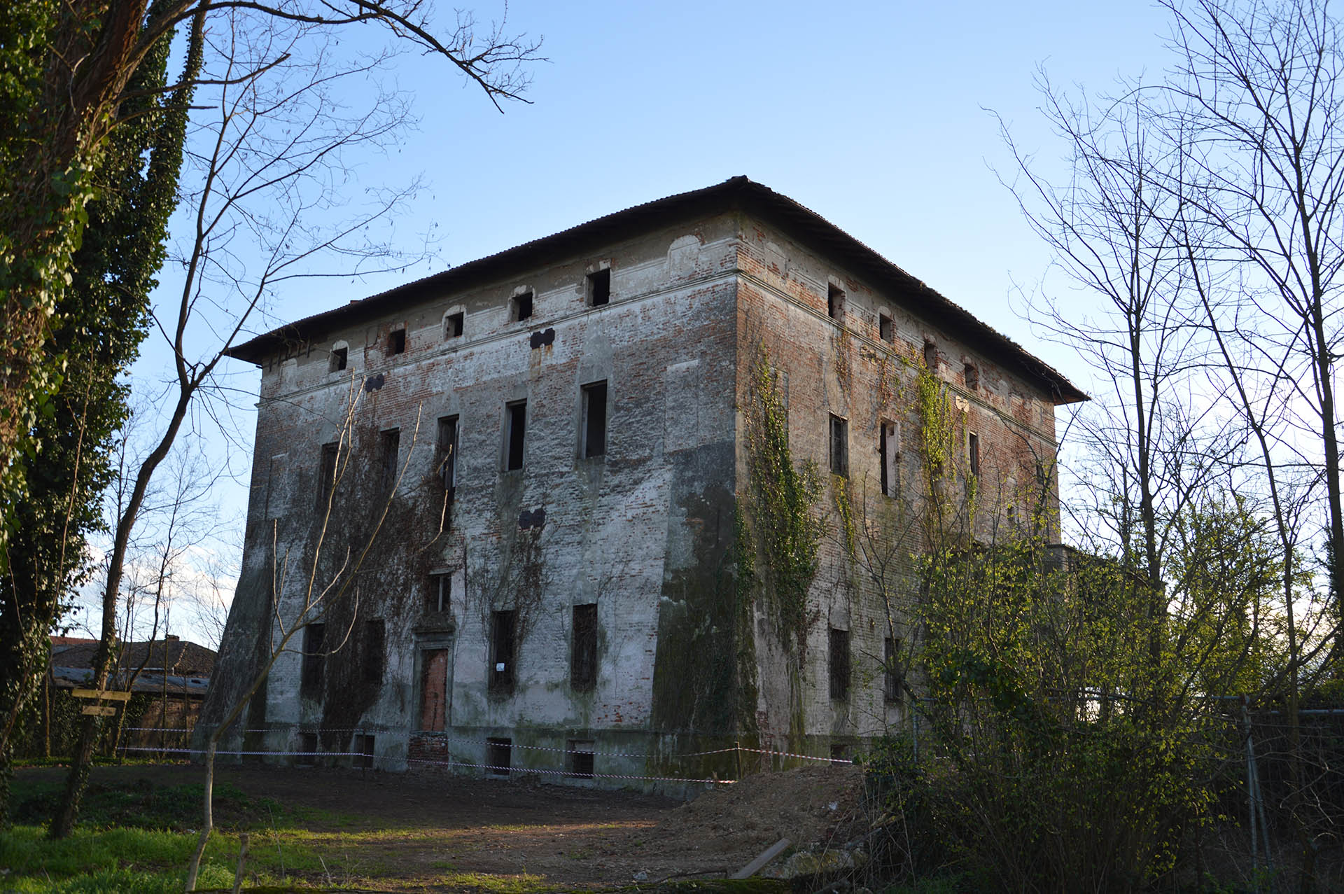Vasta mole cubica, sopra un poggio, con potenti contrafforti alle pareti. Piano terreno e primo piano di grande altezza, grande solaio superiore in parte sistemato a mezzanino. Esternamente portale di pietra a timpano spezzato, con scudo araldico nel mezzo. In sommità si scorgono le tracce del cornicione caduto o demolito: era di muro, a sguscio di forte sporgenza, con lunette in corrispondenza ai finestrotti del mezzanino. L’ampio sotterraneo a volte robuste conteneva in origine cucine, servizi e cantine. Nell’interno ormai spoglio di ogni elemento decorativo, vaste sale nei due piani: coperte da volte nel terreno, e con soffittature di legno di accurata lavorazione al piano superiore. Al primo piano, presso ad una sala, un curioso localetto d’angolo, a pianta ottagonale, con nicchie e lesene sulle facce, offre un raro esempio di architettura sanitaria del tardo Rinascimento. Spogliato di ogni arredo e d’ogni traccia d’arte, l’edificio non ebbe almeno a soffrire di sovrapposizioni che ne alterassero l’aspetto originale.